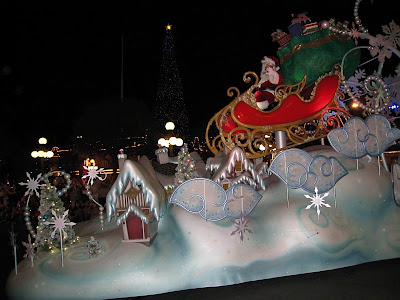 The park closes early for this event, but don’t worry- if you have tickets, you can go right back in! As soon as you get there, Mickey’s Once Upon A Christmastime Parade begins- complete with a special appearance by Santa Claus himself. While he comes up the rear- I can’t say that he was the main attraction for many- it was still Micky and Minnie!